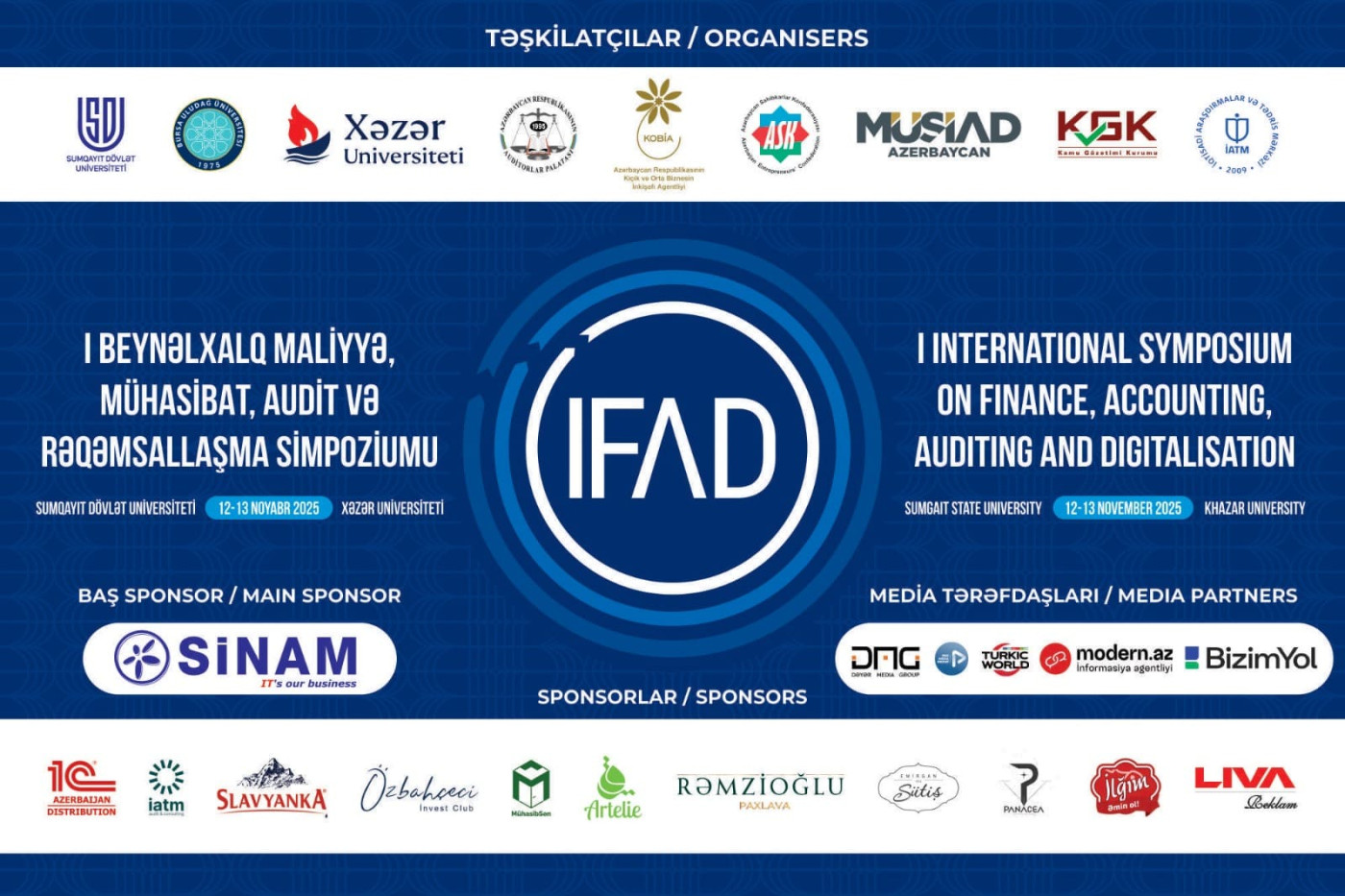 12-13 Noyabr 2025-ci il tarixlərində İqtisadi Araşdırmalar və Tədris Mərkəzinin (İATM-in) təşəbbüsü, Sumqayıt Dövlət Universiteti, Bursa Uludağ Universiteti, Xəzər Universiteti, Azərbaycan Respublikası Auditorlar Palatası, Kiçik və Orta Biznesin İnkişafı Agentliyi (KOBİA), Azərbaycan Sahibkarlar Konfederasiyası, MÜSİAD Azərbaycan İctimai Birliyi və Türkiyə Cümhuriyyəti İctimai Nəzarət və Audit Standartları Qurumunun (KGK) birgə təşkilatçılığı və SİNAM şirkətinin baş sposorluğu ilə “Maliyyə, Mühasibat, Audit və Rəqəmsallaşma” mövzusunda I Beynəlxalq Simpozium keçirilmişdir.